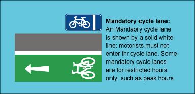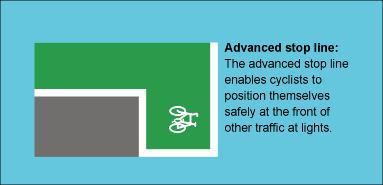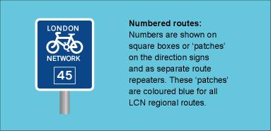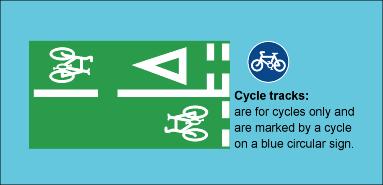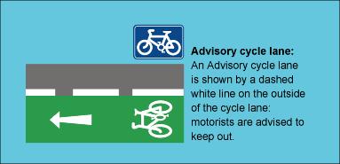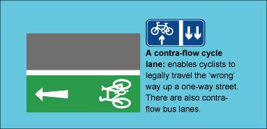 Cycle lanes may be coloured green or red. Some routes may also be numbered