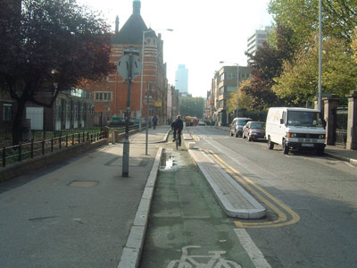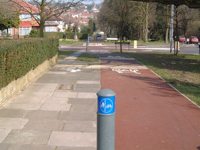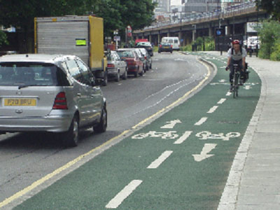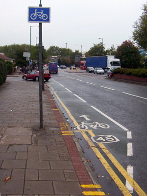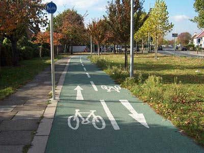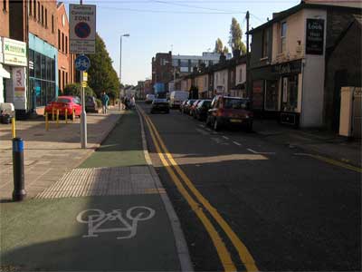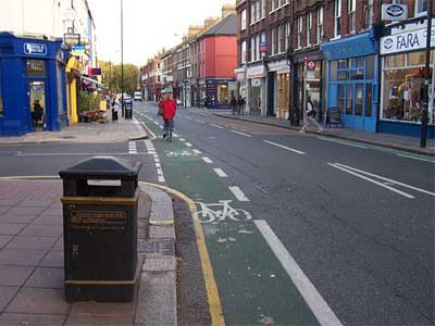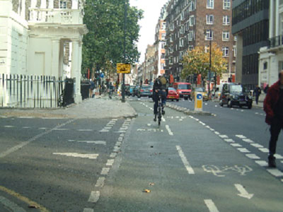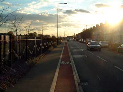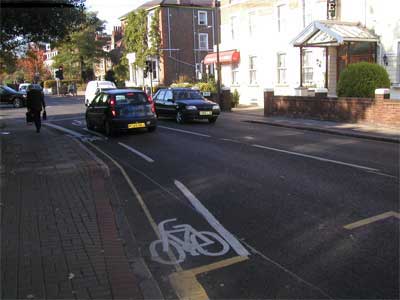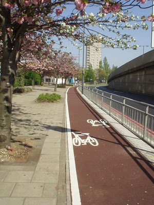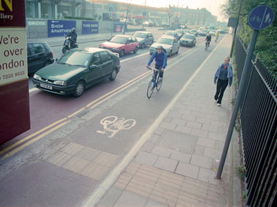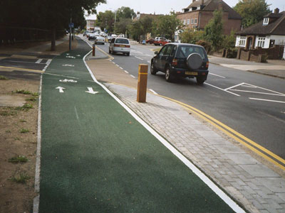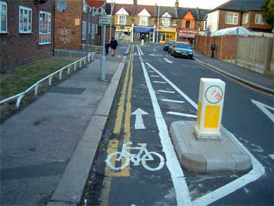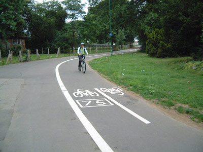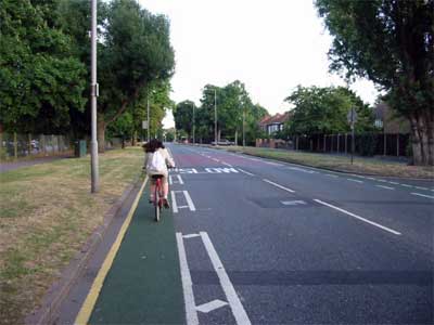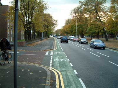 Cycle Lanes. Lanes on carriageway in both directions provide a north-south
